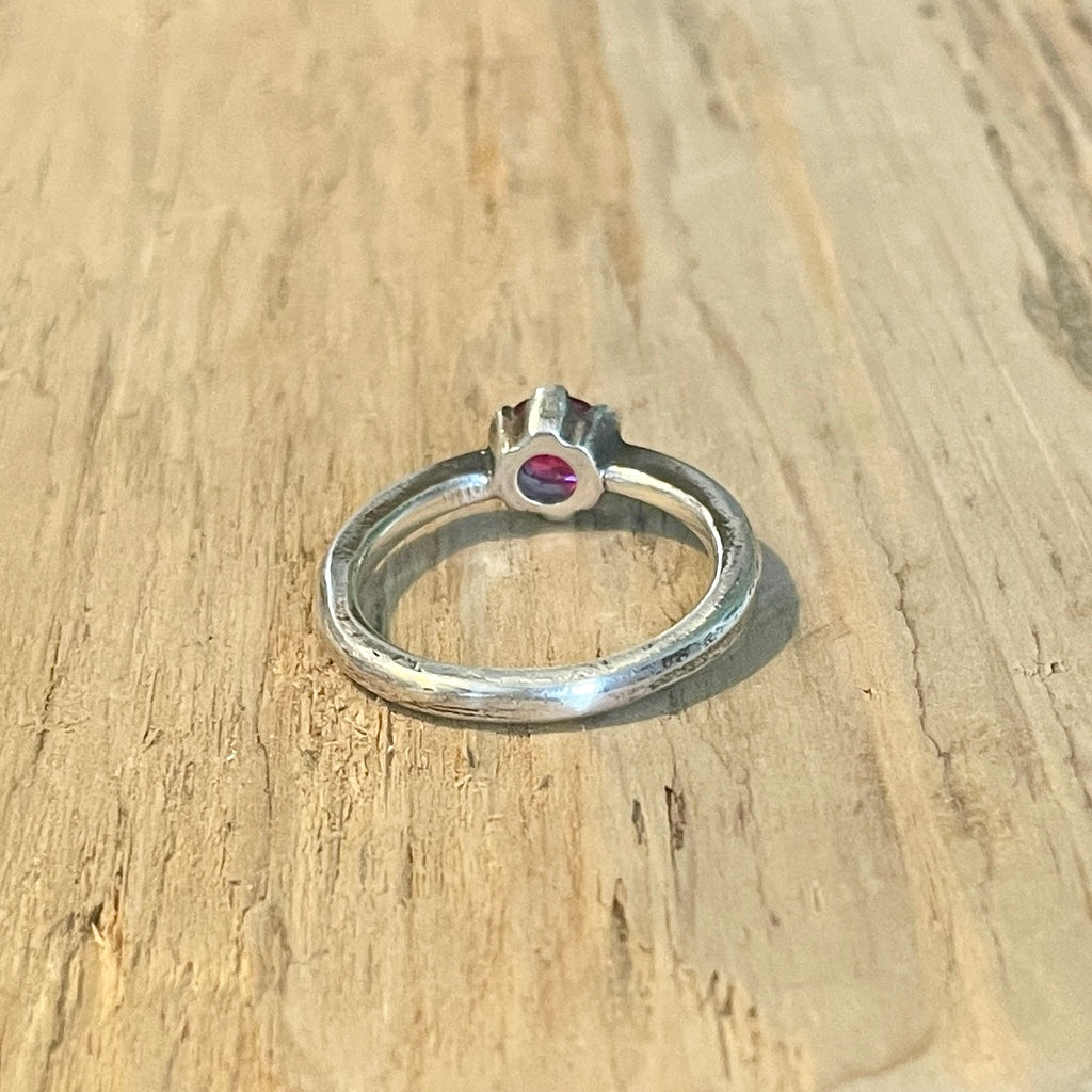 Treasure chest collection claw setting ruby silver ring. Narrow design by the gemstone. Size 7.5